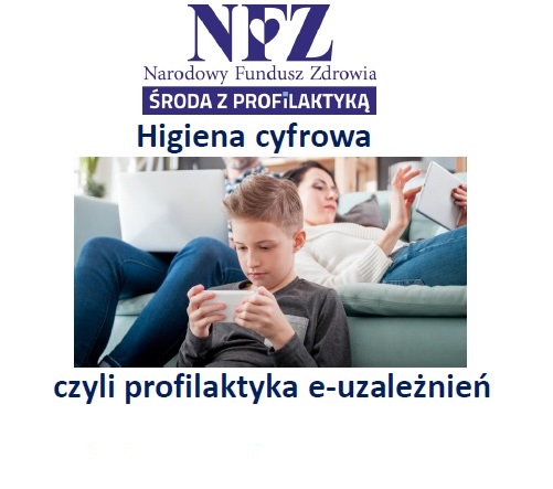 Tematem najbliższej środy z profilaktyką będzie „Higiena cyfrowa - czyli profilaktyka e-uzależnień” - zachęcamy do obejrzenia publikacji na stronie Akademia NFZ i na kanale You Tube.