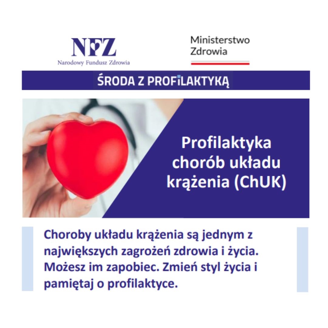 Mimo coraz lepszej diagnostyki i nowocześniejszych metod leczenia umieralność w Polsce z powodu chorób układu krążenia należy do najwyższych w Europie.  Na ich rozwój wpływa wiele czynników związanych ze stylem życia, m.in.: nieodpowiednia dieta, palenie tytoniu i picie alkoholu, stres czy brak lub niewystarczająca ilość aktywności fizycznej.  Dla osób szczególnie narażonych na choroby układu krążenia został opracowany Program Profilaktyki Chorób Układu Krążenia (ChUK).
