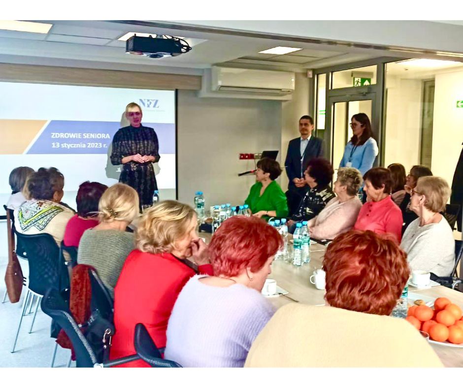 Dzięki Pani Urszuli Chudak, przewodniczącej rady, która odpowiedziała na zaproszenie pracowników NFZ, udało się zorganziować spotkanie, które obfitowało w mnóstwo cennych rozmów o zdrowiu i profilaktyce. Seniorzy pytali i aktywnie uczestniczyli w dyskusji na temat badań profilaktycznych z oferty Narodowego Funduszu Zdrowia. Dodatkowo uczestnicy skorzystali z pomiarów w kiosku profilaktycznym i konsultacji z zaproszonymi do Sali Obsługi Klienta farmaceutami.