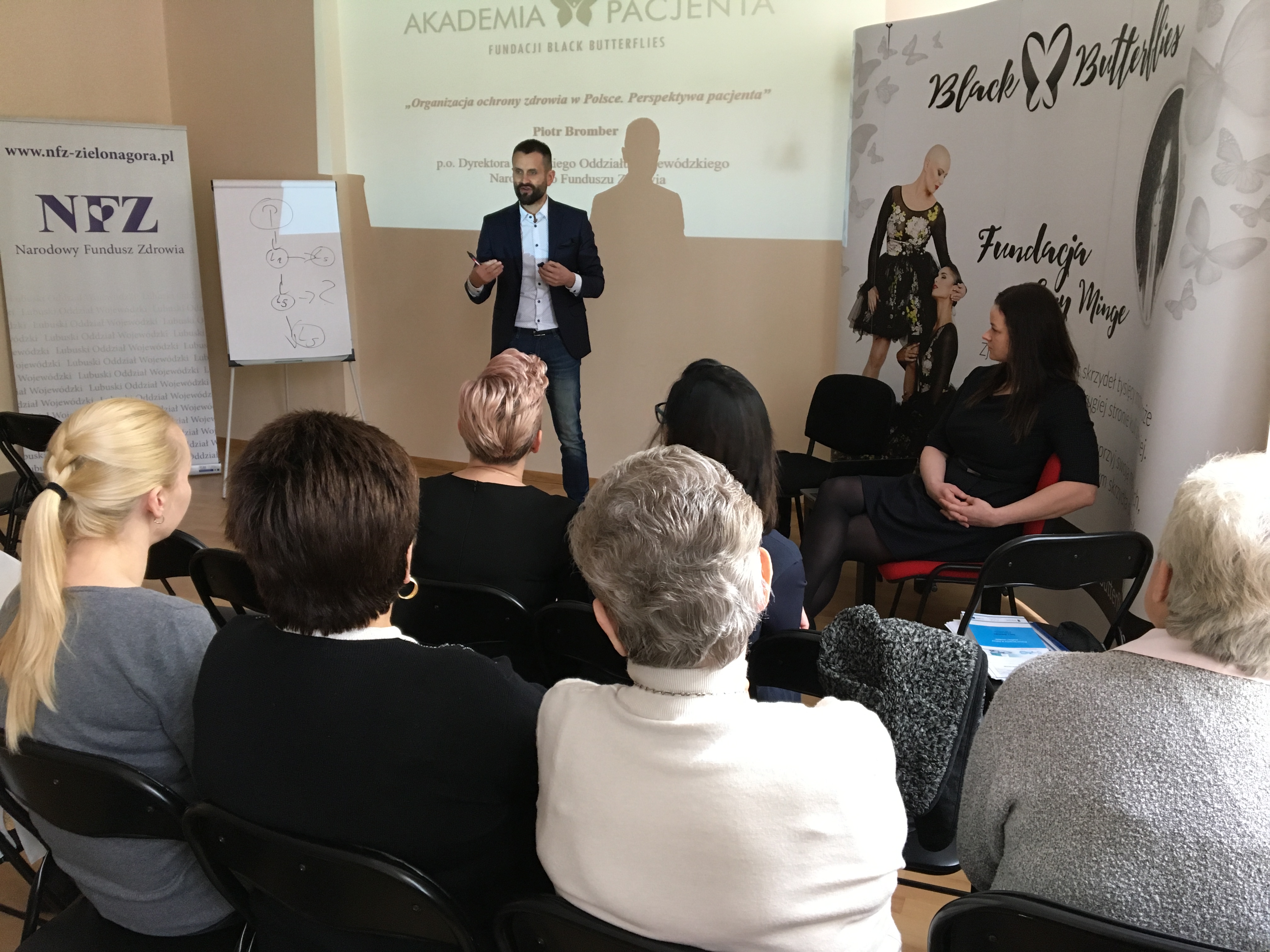 „Organizacja ochrony zdrowia w Polsce. Perspektywa pacjenta” to temat wykładu zaprezentowanego przez Pana Piotra Brombera p.o. Dyrektora Lubuskiego Oddziału Wojewódzkiego Narodowego Funduszu Zdrowia w sobotę 22 kwietnia br. w siedzibie fundacji Black Butterflies. Było to pierwsze spotkanie z cyklu wykładów o leczeniu chorób onkologicznych organizowanych w ramach „ Akademii Pacjenta” skierowanych do osób dotkniętych chorobą onkologiczną oraz ich bliskich.