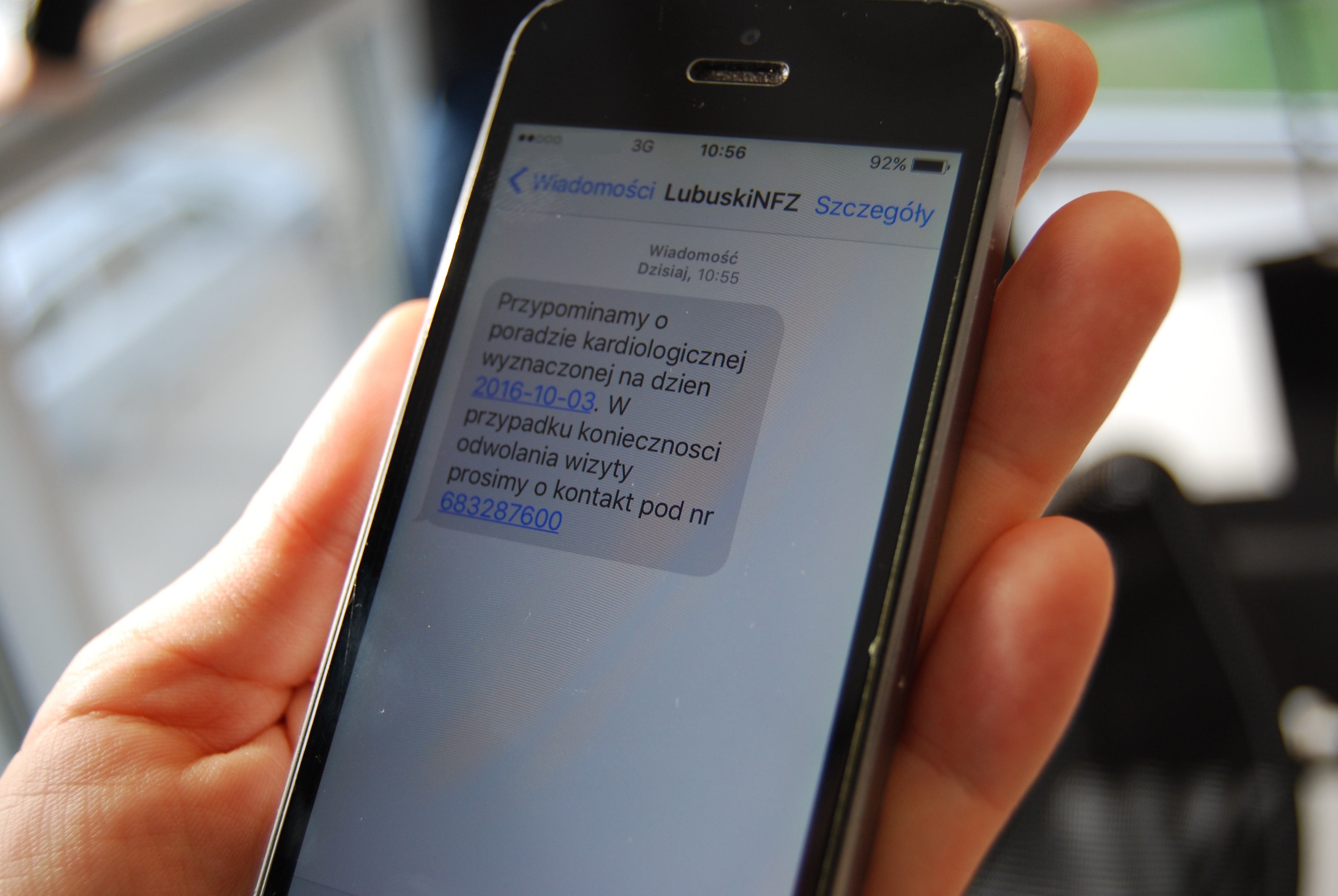 Od 1 października 2016 Lubuski Oddział Wojewódzki NFZ będzie wysyłał do Pacjentów wiadomości o terminie wizyty w poradni. SMS z przypomnieniem trafi do Pacjenta cztery dni przed wizytą.