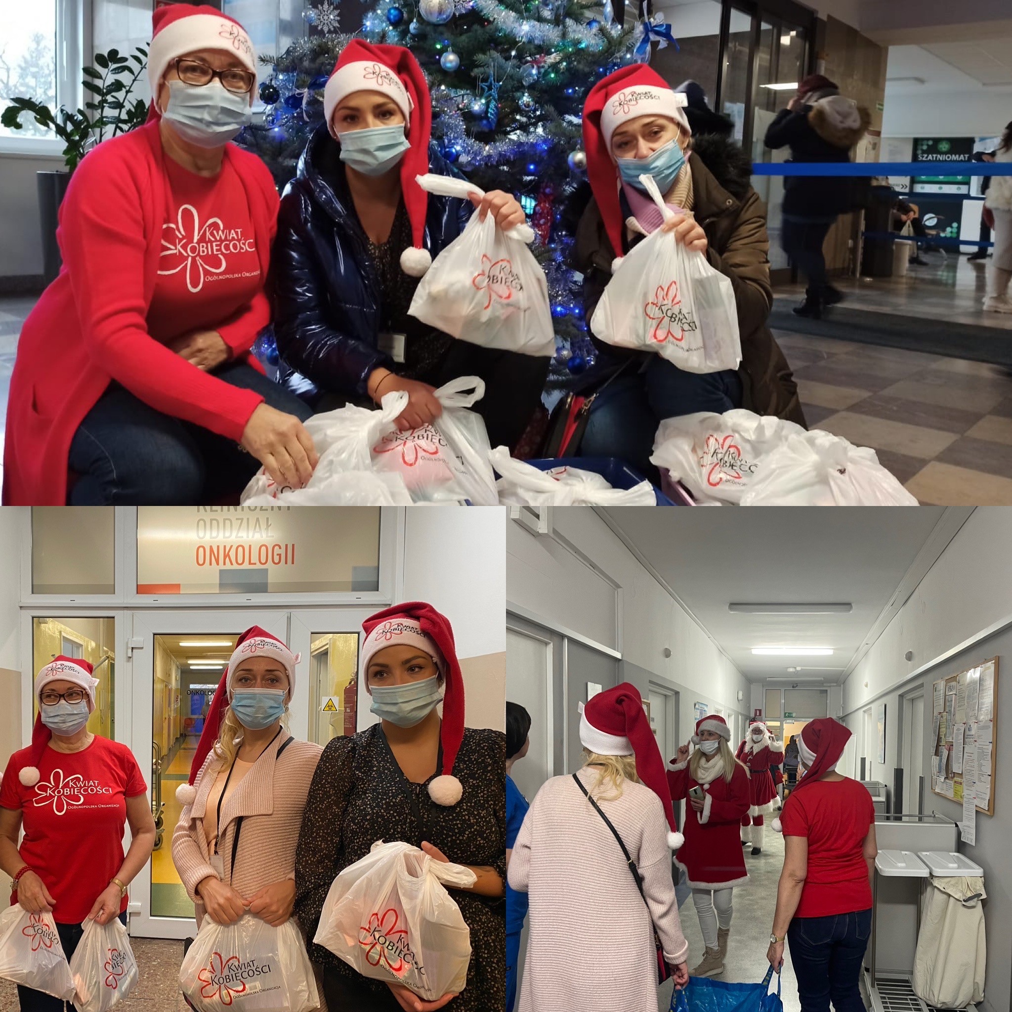 Nasza profilaktyczna drużyna wyruszyła dzisiaj w mikołajkową trasę. Dwanaście lat temu pierwszy raz zapukałyśmy do pokoi pacjentek przebywających na oddziałach onkologicznych i ginekologicznych lubuskich szpitali właśnie w „Mikołajki”. Pomysł mikołajkowych odwiedzin powstał w Ogólnopolskiej Organizacji Kwiat Kobiecości i stał także tradycją w województwie lubuskim. „Kwiat Kobiecości” zrzesza kobiety, które same przeszły chorobę nowotworową narządów rodnych i co najważniejsze - pokonały ją. Ich misją jest niesienie pomocy każdej kobiecie, która zmaga się z rakiem szyjki macicy i innymi chorobami ginekologicznymi. Podczas takich spotkań Panie bardzo chętnie podejmują rozmowy na temat badań profilaktycznych oraz problemów zdrowotnych. W paczkach obok drobnych upominków znalazły się również ulotki informacyjne na temat profilaktycznych badań finansowanych przez NFZ (cytologia i mammografia) oraz kontakt do koordynatora Kwiatu Kobiecości w Lubuskiem.