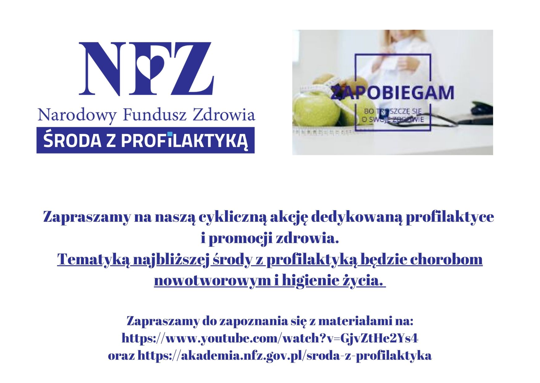 Zapraszamy na naszą cykliczną akcję dedykowaną profilaktyce i promocji zdrowia, która ze względu na bezpieczeństwo pacjentów będzie kontynuowana w innej formie. Mając na uwadze jak ważnym tematem jest profilaktyka zdrowotna realizujemy nasz cotygodniowy cykl na naszym kanale YouTube oraz na platformie internetowej – Akademia NFZ.