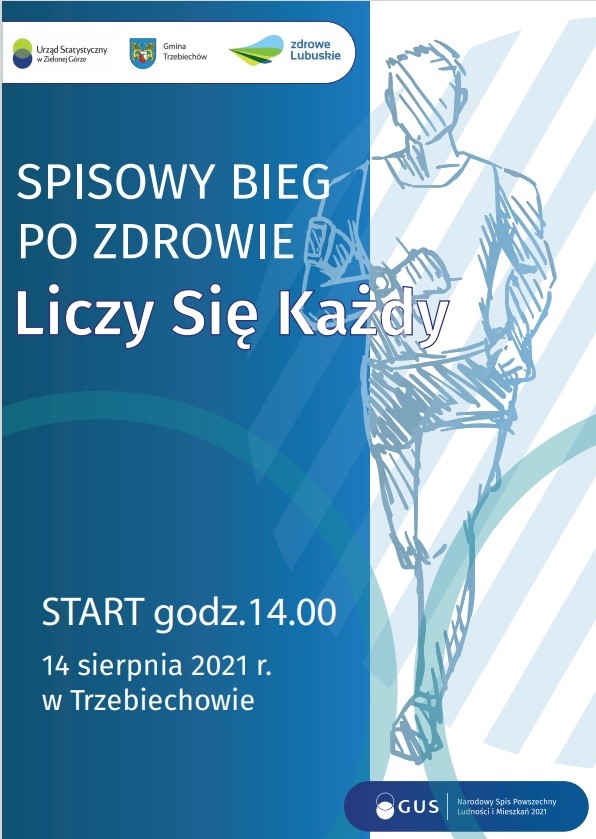 Liczy Się Każdy. Urząd Statystyczny w Zielonej Górze zaprasza do wzięcia udziału w Spisowym Biegu Po Zdrowie, który odbędzie się 14 sierpnia br. w Trzebiechowie. Zapisy już ruszyły. Bez opłaty startowej. Jedyny warunek to udział w spisie. Liczba miejsc ograniczona. Zapisz się już dziś na stronie https://www.zapisy.maratonczykpomiarczasu.pl/bieg... i stań na starcie Spisowego Biegu Po Zdrowie. Imprezie biegowej towarzyszyć będzie mnóstwo innych atrakcji.