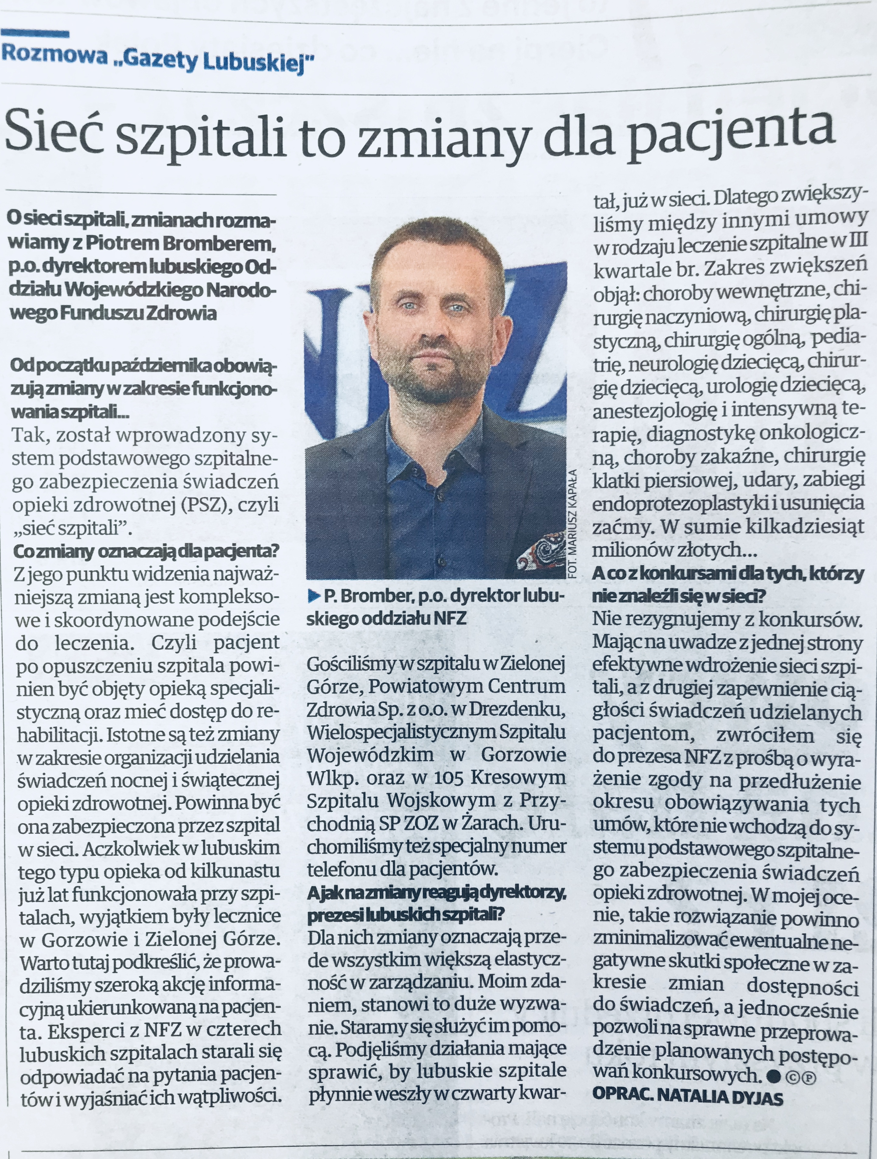 Ogólnopolska kampania informacyjna na temat " sieci szpitali" podsumowanie wizyty w 105. Kresowym Szpitalu Wojskowym z Przychodnią SP ZOZ w Żarach w dniu 27 września