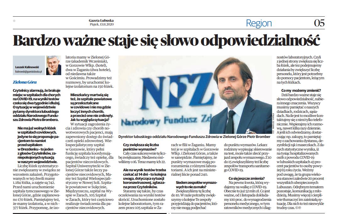 3 czerwca 2020 r. Lubuski oddział Wojewódzki Narodowego Funduszu Zdrowia w Zielonej Górze podpisał porozumienie partnerskie z IV Liceum Ogólnokształcącym „Lotnik” w Zielonej Górze https://twitter.com/joanna_branicka/status/1268133849667637250 na mocy, którego Szkoła przyjęła patronat LOW NFZ w zakresie działań edukacyjnych, mających na celu maksymalne podnoszenie poziomu kształcenia w zakresie medycznym oddziałów szkoły . Uczniowie zielonogórskiego „Lotnika” podczas spotkań z przedstawicielami LOW NFZ skorzystają z porad dot. m.in zdrowego trybu życia, profilaktyki chorób cywilizacyjnych oraz społecznych. Dodatkowo LOW NFZ umożliwi uczniom i wychowawcom spotkania ze specjalistami z wybranych dziedzin medycznych oraz wizyty w podmiotach medycznych na terenie miasta w celu zapoznania z nowoczesną aparaturą diagnostyczną, zapoznania z pracą lekarzy specjalistów, a także poznania metod badań laboratoryjnych.