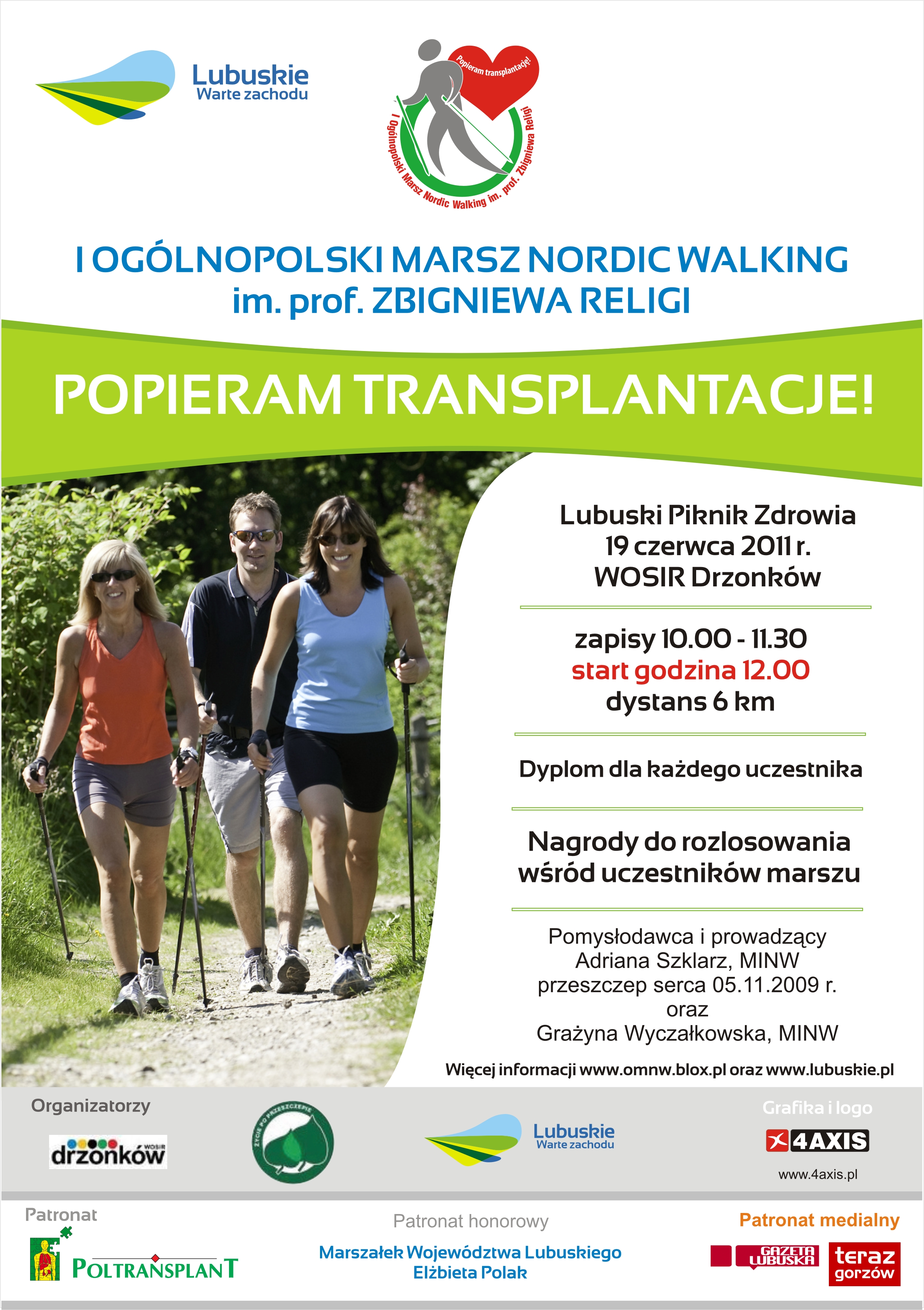 W imieniu Urzędu Marszałkowskiego Województwa Lubuskiego serdecznie zapraszamy na II Lubuski Piknik Zdrowia. Impreza odbędzie się 19 czerwca 2011 r. w Drzonkowie na terenie Wojewódzkiego Ośrodka Sportu i Rekreacji.Szczegóły w załącznikach.