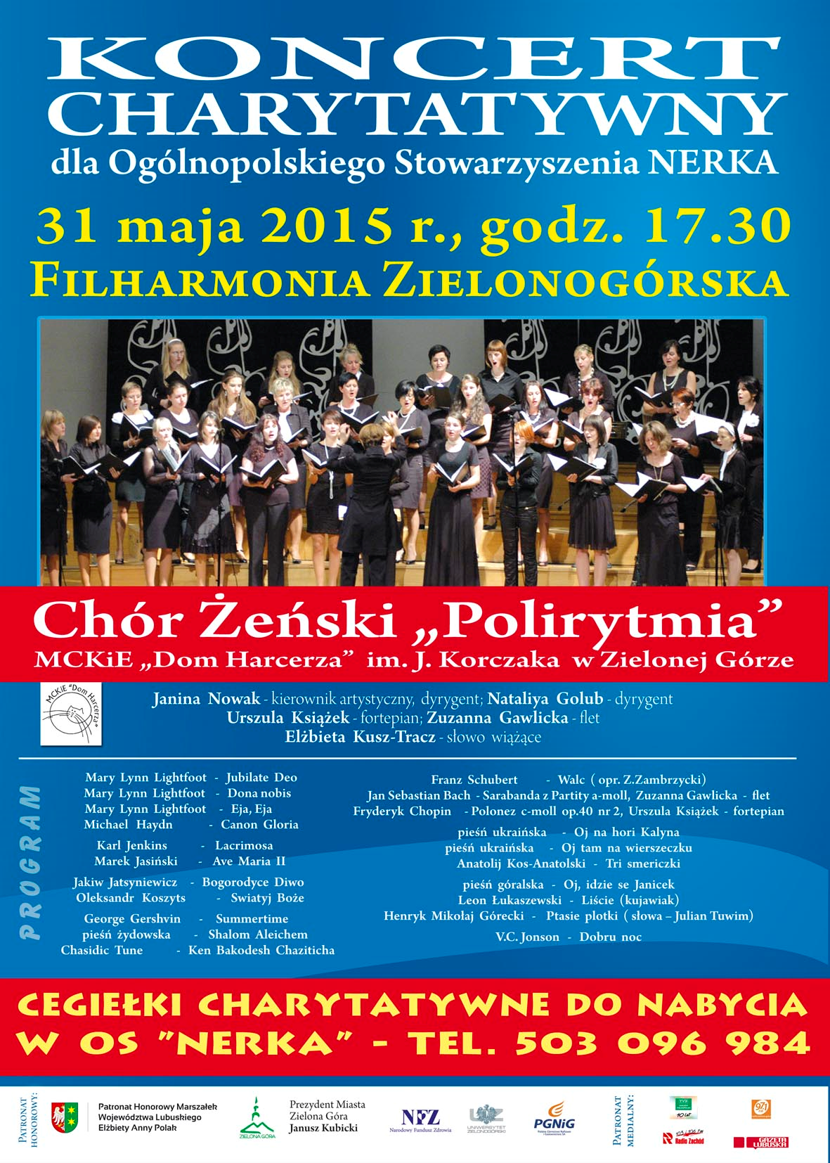 Na prośbę Prezes Ogólnopolskiego Stowarzyszenia "Nerka" z Zielonej Góry Pani prof. Bogumiły Burdy serdecznie zapraszamy wszystkich na Koncert Charytatywny na rzecz stowarzyszenia, który odbędzie się w niedzielę 31 maja 2015r. w Filharmonii Zielonogórskiej .