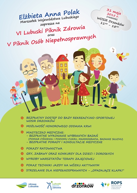W najbliższą niedzielę, 31 maja w godz. 11.00-18.00 w Wojewódzkim Ośrodku Sportu i Rekreacji w Drzonkowie odbędzie się VI Lubuski Piknik Zdrowia. Serdecznie zapraszamy do udziału w imprezie, która w tym roku jest dedykowania dzieciom z uwagi na zbliżający się Dzień Dziecka.